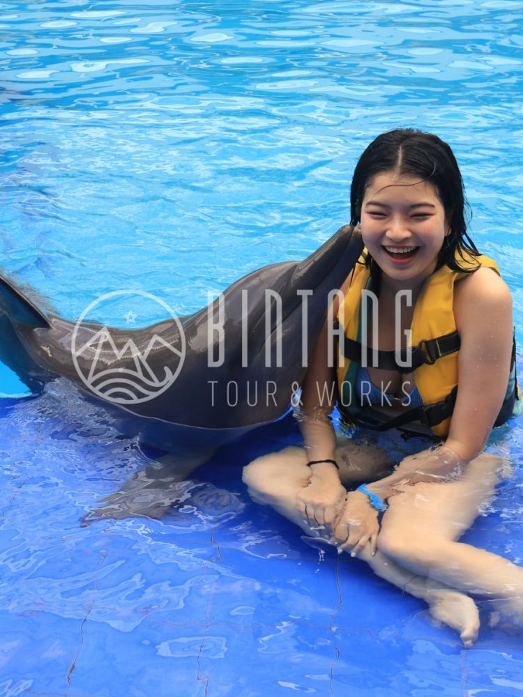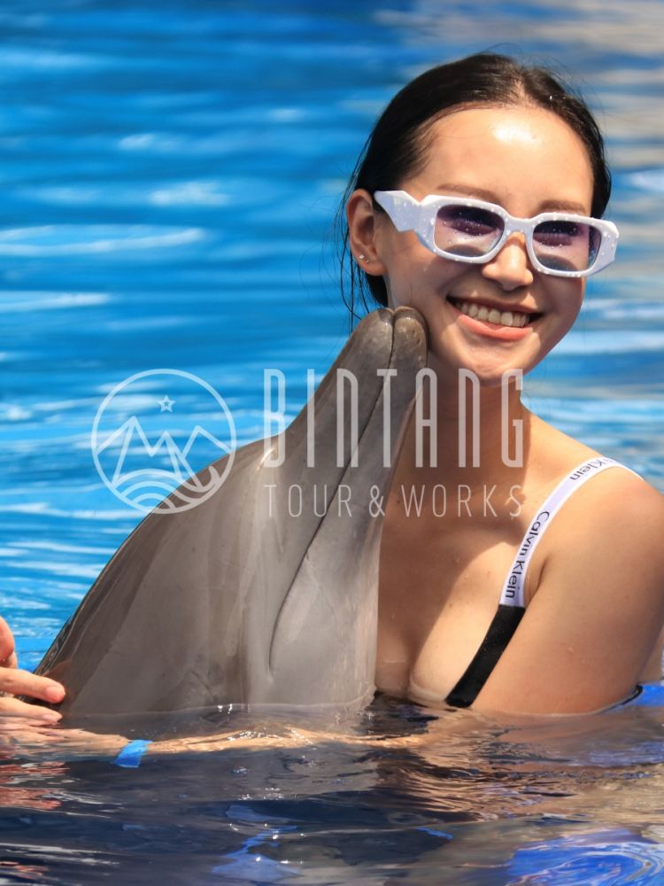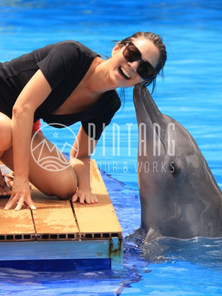 At Bali Exotic Marine Park, you can choose from a number of different courses to customize your experience. The course included in this tour is the Explorer course. The Explorer program gives you the opportunity to take photos and kiss the dolphins at the edge of the pool under the guidance of a dolphin trainer. It's an unforgettable experience for tourists who want to interact with dolphins.